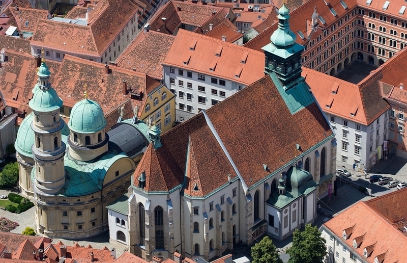 Am Fuße des Schlossberges thront die „Grazer Stadtkrone“, die zusammengesetzt aus Domkirche, Burg, Mausoleum, Alte Universität und Priesterseminar ein wahres Juwel von Graz bildet!