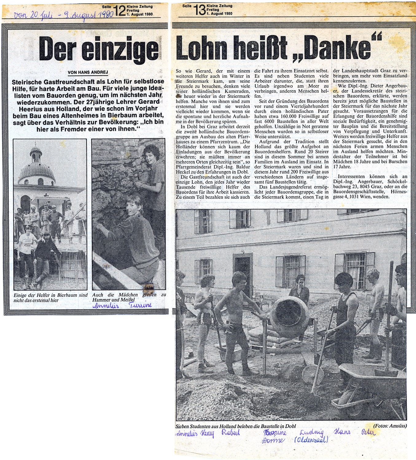 Herzlichen Dank an Ursula Leitl für die Fotos und Zeitungsartikel aus ihrem Archiv!