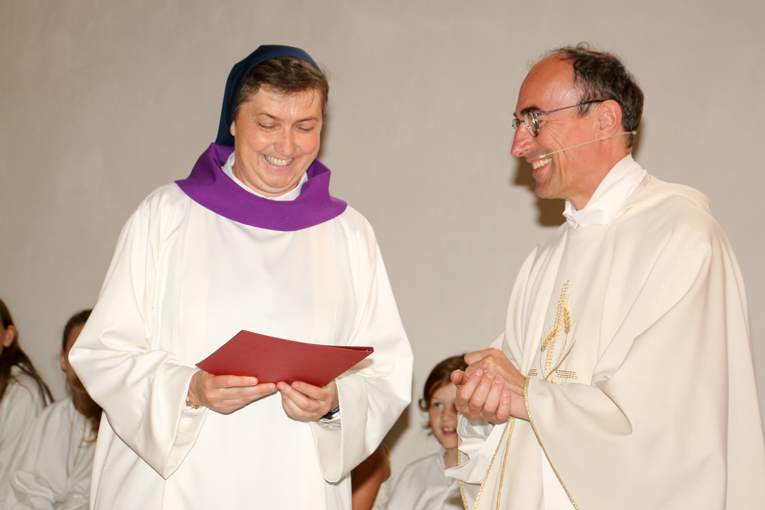 Sr. Maria Leopold hat diesen Ausbildungskurs mit sechs Modulen gemacht und ein Praktikum absolviert. Sie wurde am Freitag, den 14. Juni vom Bischof für die Pfarre gesendet und am Sonntag, den 16. Juni von Pfarrer Karner der Pfarrbevölkerung vorgestellt. Die Verantwortlichen der Diözese wünschen, dass die Begräbnisleiter ein liturgisches Kleid – eine weiße Albe – tragen.