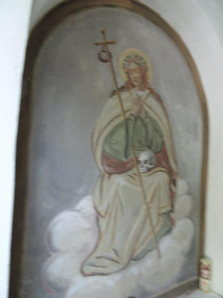 die vermutlich vom Maler Ortenberg stammten. Dargestellt sind dort auf der linken Seite die Heilige Dorathea mit den Rosen, bedeutet eigentlich „Gottes Geschenk“ (griechisch), und auf der rechten Seite der Erzengel Gabriel, bedeutet eigentlich „Mann Gottes“ (hebräisch).