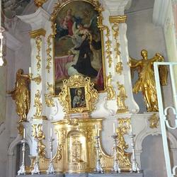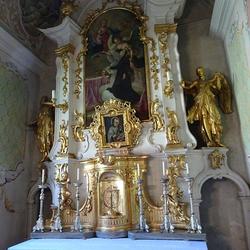 Der Altar ist ein typischer, reich geschwungener und in Weiß und Gold gefasster Rokoko-Altar mit dem Altarbild des „Hl. Aloisius“ vom berühmten Kirchenmaler und Universalgenie Joseph Adam Mölk. Auf dem Tabernakel steht ein reich gerahmtes Ölbild des Heiligen, ein Gnadenbild spanischer Herkunft, bei dem sich damals Wunderbares zugetragen hatte. Der Jesuit Aloysius Gonzaga wurde 1726 heiliggesprochen.