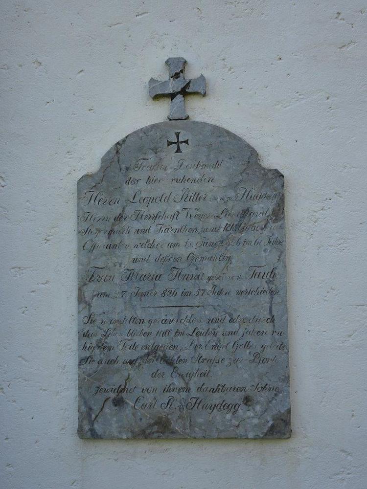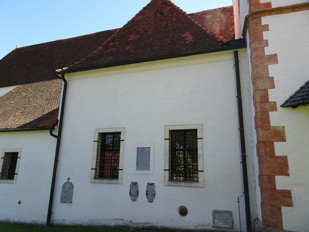 An der Rückwand ist ein Renaissance-Grabmal für Kaspar von Radmannsdorf (gestorben 1584) in weißem Marmorrelief mit Halbfigur in voller Rüstung sichtbar. An der Nordwand befindet sich eine stark verwitterte Marmorgrabplatte für den 1480 verstorbenen Barthlme Lichnider und dessen Gattin. Auf dem Fußboden weist eine große Steinplatte auf die von den Redemptoristen darunter angelegte Priestergruft hin.