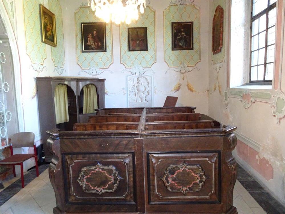 Ferner sind in der Kapelle mehrere barocke Bilder angebracht, wie der „Gnadenstuhl“, die „Hl. Apollonia“ (Rückwand), und der „Hl. Xaver“ (Nordwand). Außerdem sind noch drei Reihen hölzerne Betstühle, die zum Verweilen einladen, und ein Beichtstuhl vorhanden. Vom Innenraum der Kirche ist die Kapelle durch ein schmiedeeisernes Gitter getrennt.
