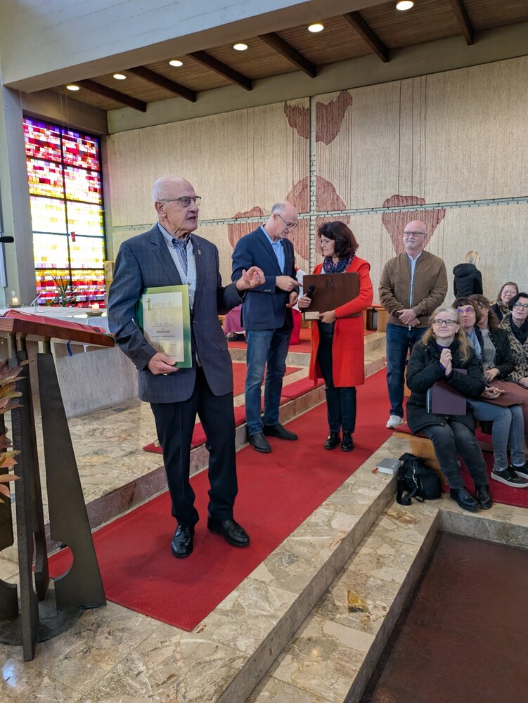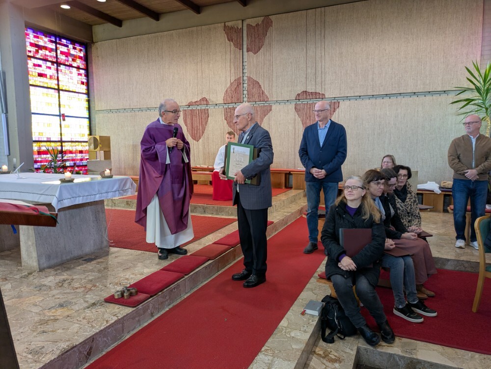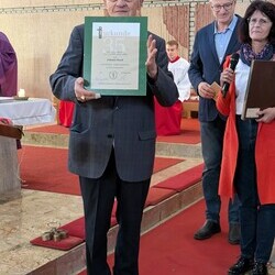 Hans Koch wurde nach dem Allerseelengottesdienst am 2.11. die goldene Ehrennadel der Mesnergemeinschaft überreicht. Unglaubliche 60 Jahre lang, auf den Tag genau, hat er diesen wertvollen Dienst in der Pfarre Lieboch geleistet. 50 Jahre lang alleine, seit 10 Jahren gibt es ein