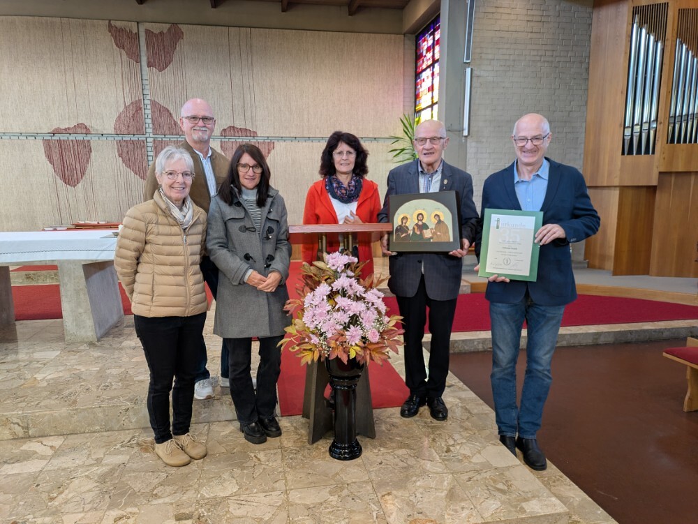 engagiertes Mesnerteam, das mit ihm feierte. Pfarre und besonders das Liturgieteam bedankten sich auch für seine vielfältigen anderen liturgischen Dienste mit einer Ikone als Geschenk.