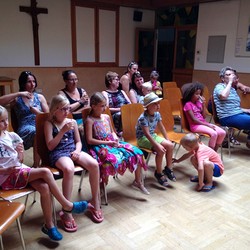 Vorlesen - Bilderbuchkino - Kamishibai und am Schluss noch eine Blindverkostung - trotz der hochsommerlichen Temperaturen hatten die Kinder großen Spass bei unserer kleinen, aber feinen Veranstaltung.