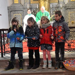 Hl. Messe mit Vikar Norbert Glaser und den Kindern, die heuer zur Erstkommunion kommen sowie Neuigkeiten