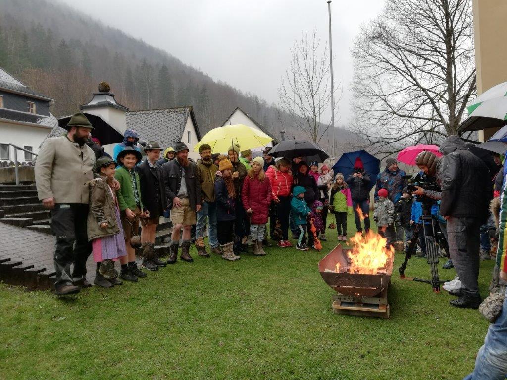 Großer Andrang herrscht alljährlich am Karsamstag vor den Pfarrkirchen bei der Segnung des Weihfeuers, wo die mit Draht befestigten, getrockneten Baumschwämme im Feuer angezündet werden.